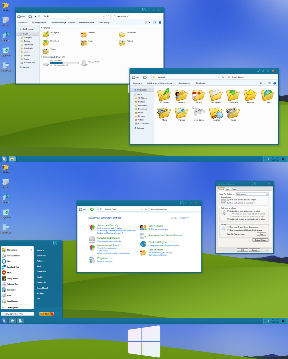You’re advised to Create a System Restore Point before installing skinpack.If you have problem with install or uninstall skinpack, please check our help page.